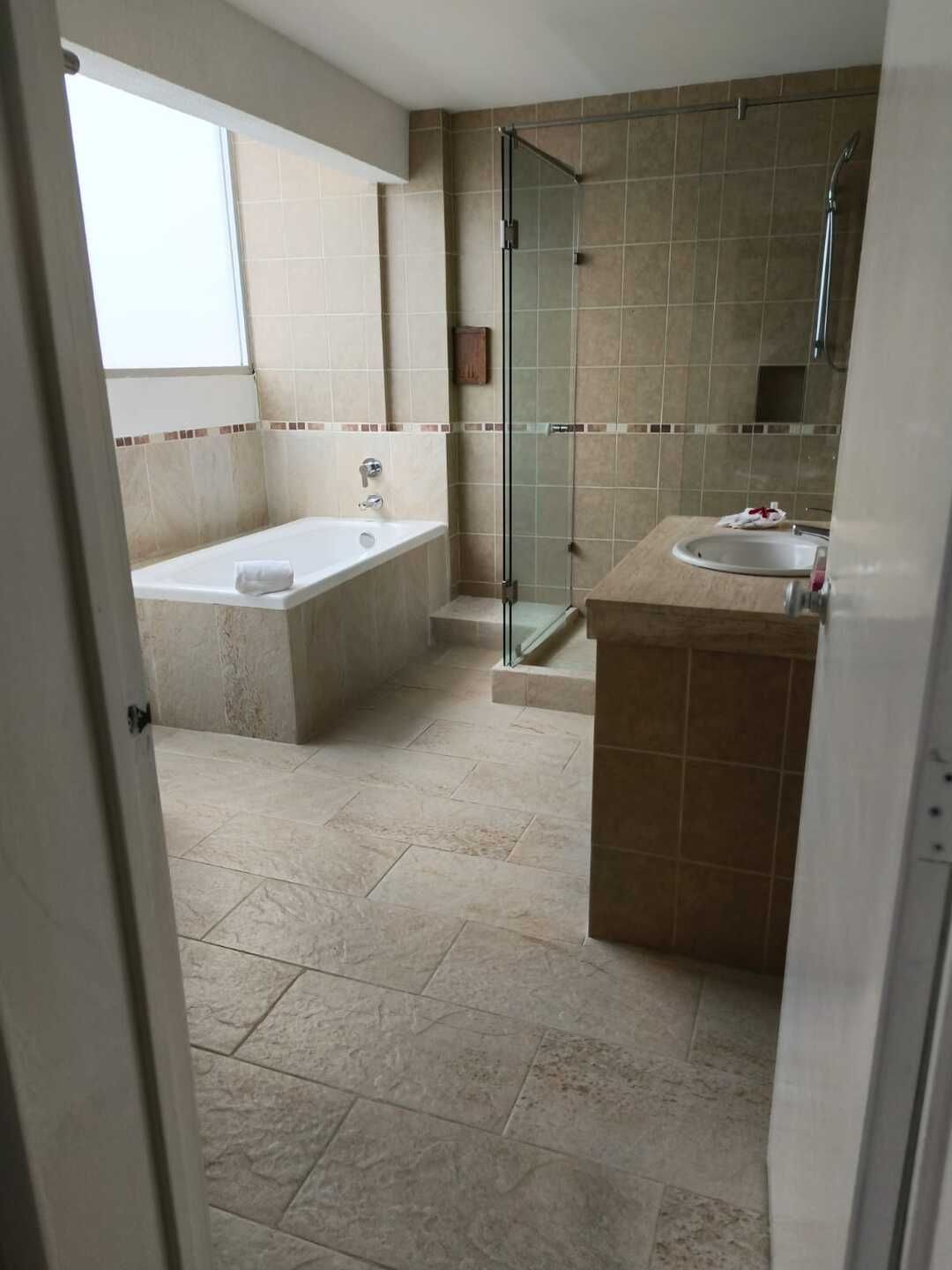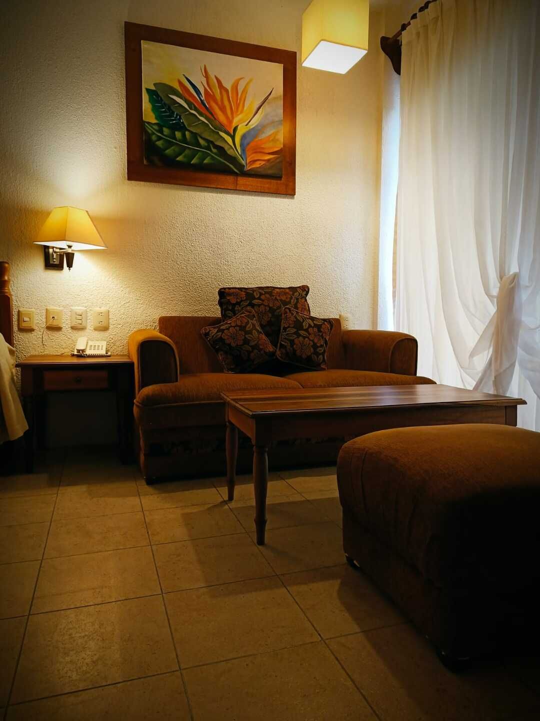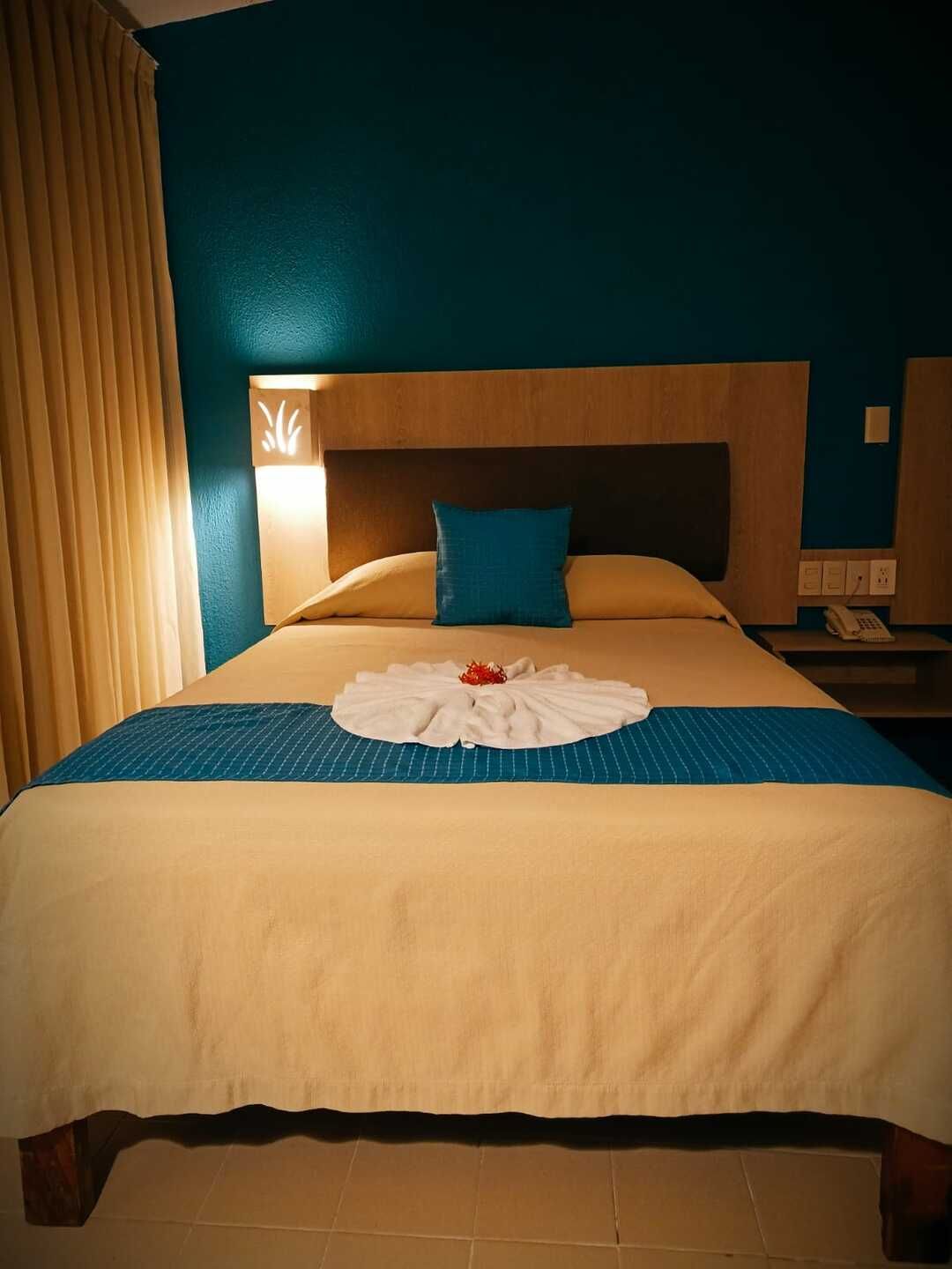 Disfruta el descanso en una amplia cama King Size para dos personas, en un ambiente diseñado para relajarte por completo. Cuenta con aire acondicionado independiente, wifi inalámbrico, TV por cable y teléfono para tu total comodidad. El baño completo con tina te invita a desconectarte y consentirte, mientras que la terraza privada se convierte en tu espacio ideal para disfrutar un momento de tranquilidad. Incluye amenidades de cortesía, secadora de cabello y kit de café para que cada detalle haga tu estancia aún más placentera. Perfecta para una escapada especial o un viaje de descanso.