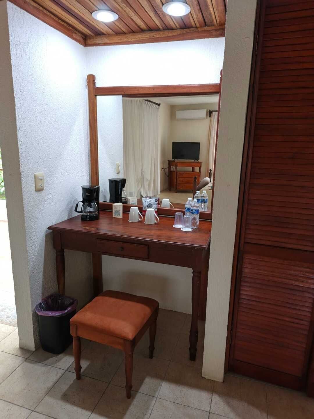 Disfruta de aire acondicionado, wifi, TV por cable y cafetera para comenzar el día a tu ritmo. Cuenta con baño privado con agua fría y caliente, amenidades básicas y caja de seguridad (sujeta a disponibilidad).